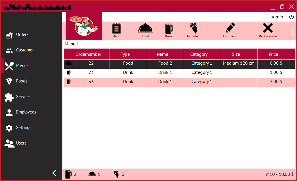 Pizzato არის Windows-is პროგრამა, რომელიც საშუალებას გაძლევთ მარტივად მართოთ თქვენი პიცერია. კონცენტრირება მოახდინეთ თქვენს კულინარიულ სამუშაოზე, დანარჩენს კი Pizzato გააკეთებს. მარტივი სამართავი თქვენი პიცერიის თანამშრომლების, კლიენტების, მიწოდების, მომსახურების, სასურსათო პროდუქტების, რეცეპტების, ფასდაკლებების, მენიუების, შეკვეთების, ინვოისების და ა.შ.. პროგრამას შეუძლია შემომავალი ზარით მოახდინოს კლიენტის იდენტიფიცირება თუ კლიენტი იყენებს სისტემაში უკვე არსებულ ტელეფონის ნომერს. ამ შემთხვევაში პროგრამა ავტომატურად გაგიხსნით შეკვეთის დიალოგს იდენტიფიცირებული კლიენტის მონაცემებით.